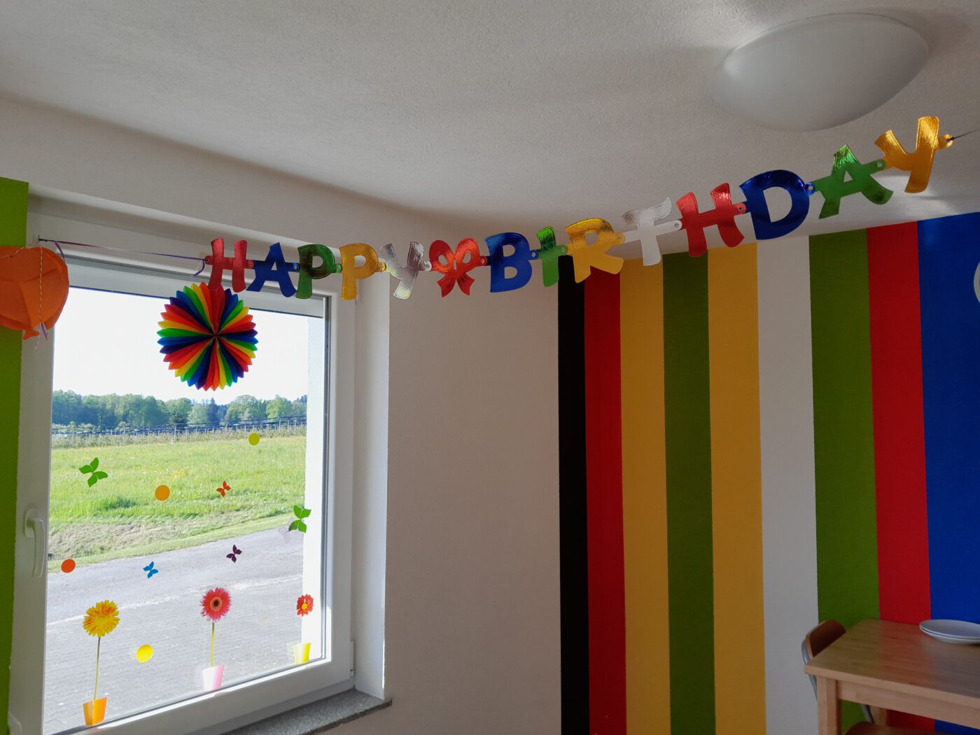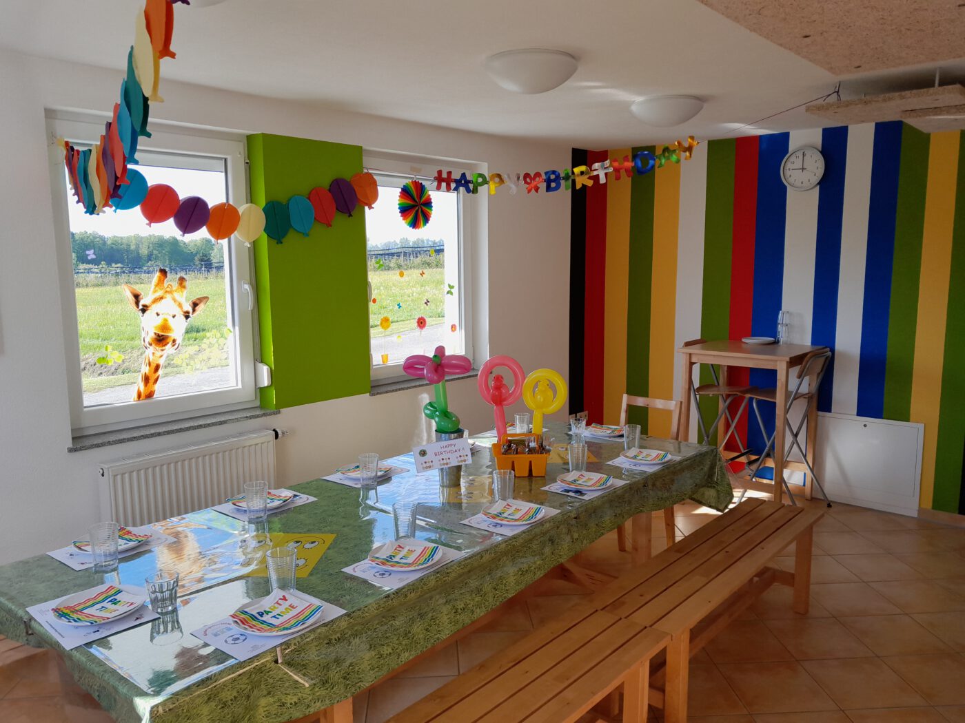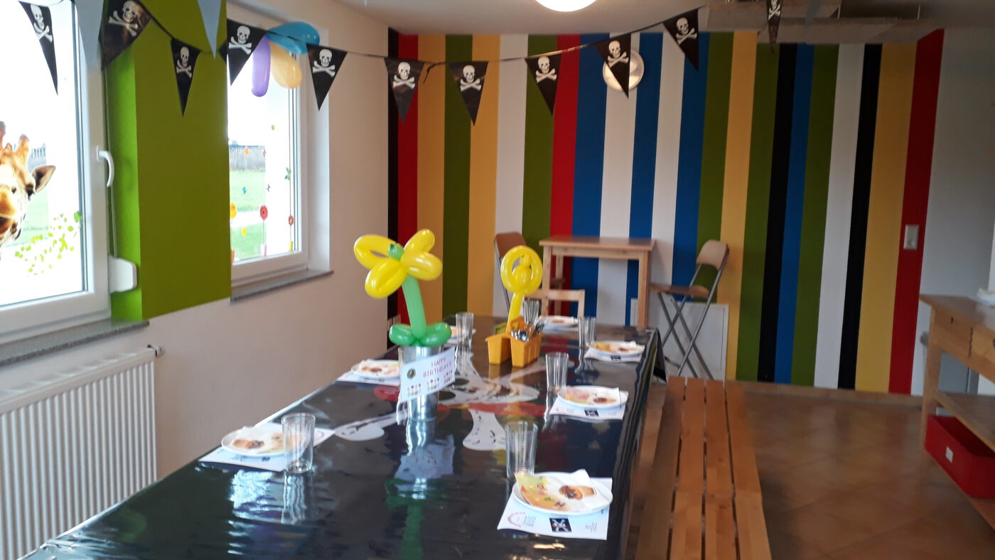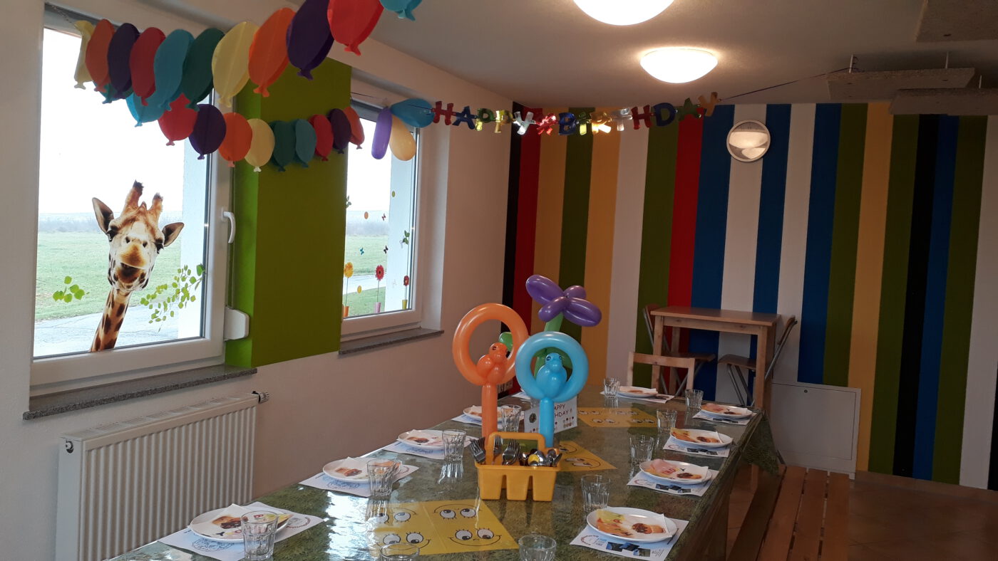 Der große Tisch ist gedeckt – einfach den mitgebrachten Kuchen draufstellen und los geht die Party !